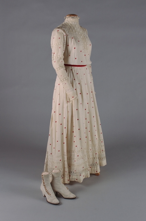 Clevelander Mertice Laffer chose this comfortable, lightweight dress to march in a parade for women’s suffrage. Many women's rights activists carefully chose their clothing, feeling that they should remain feminine and fashionable while fighting for political equality, lest their appearance distract from the message. Parades offered an opportunity to draw attention in an acceptable way, with neat lines of marchers dressed in white from head to booted toe.